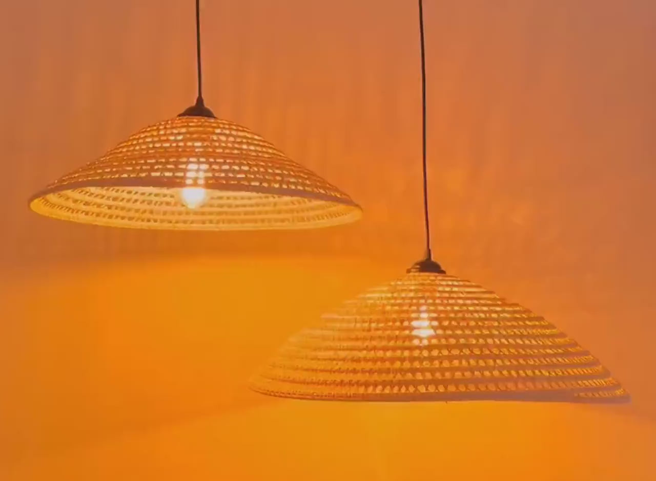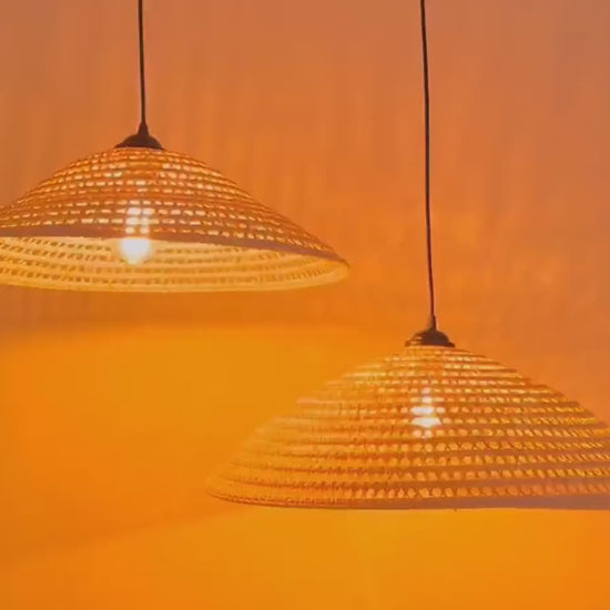 Each cone shaped pendant rattan is entirely handmade, starting with carefully selected natural rattan. The fibers are soaked to soften, then hand-woven by skilled artisans using traditional techniques—no molds, no machines, each hand-woven detail not only shows the skillful weaving skills but also includes the heart and soul of the artisan who loves the traditional weaving craft
