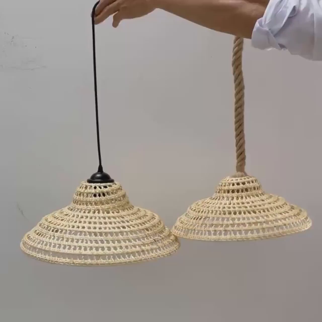 Cone shade lamp rattan pendant light wicker lamp shade vintage woven art deco lamp