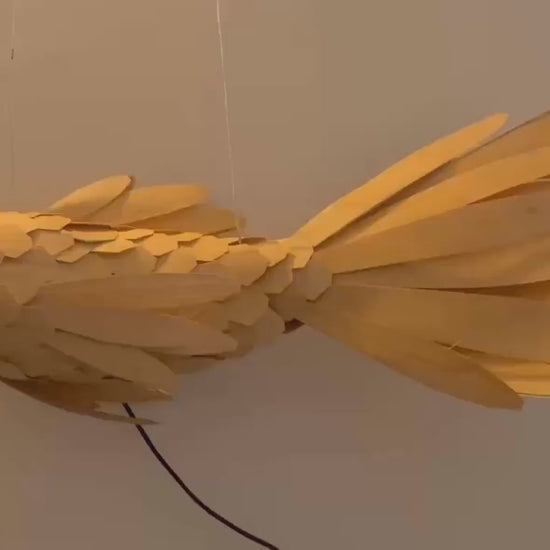 This wood veneer fish hanging light adds a playful, natural touch to any room. Its woven body casts soft, artistic shadows when lit, creating a warm and cozy glow. Lightweight and easy to hang, it's both a beautiful decor piece and a functional source of ambient light — perfect for living rooms, bedrooms, or coastal-style spaces...