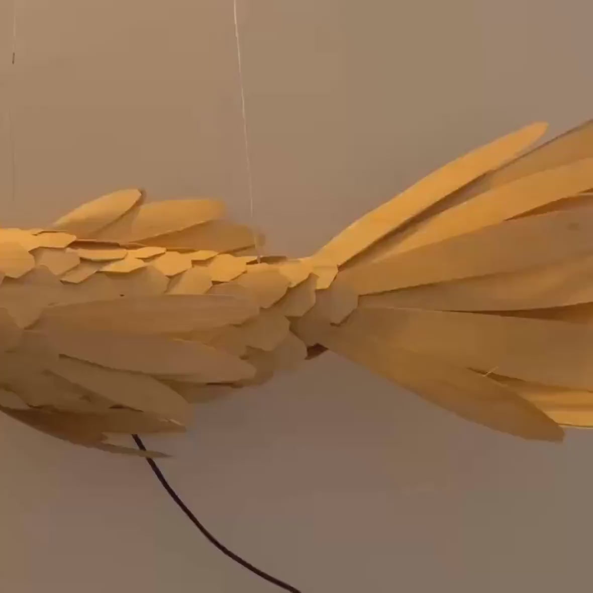 Fish ceiling light wood veneer lamp woven fish lantern handcrafted fish chandelier lighting art decor