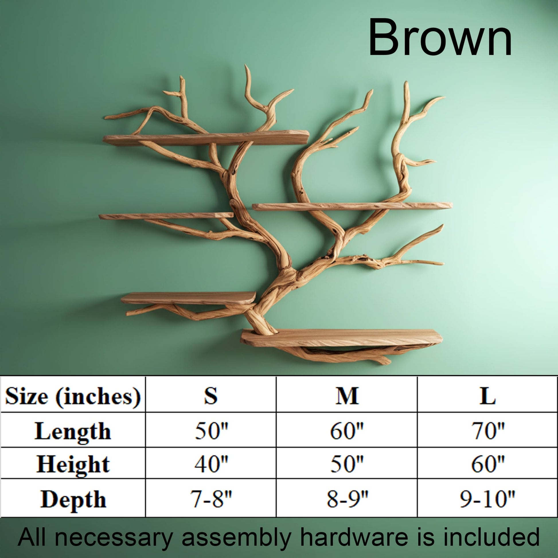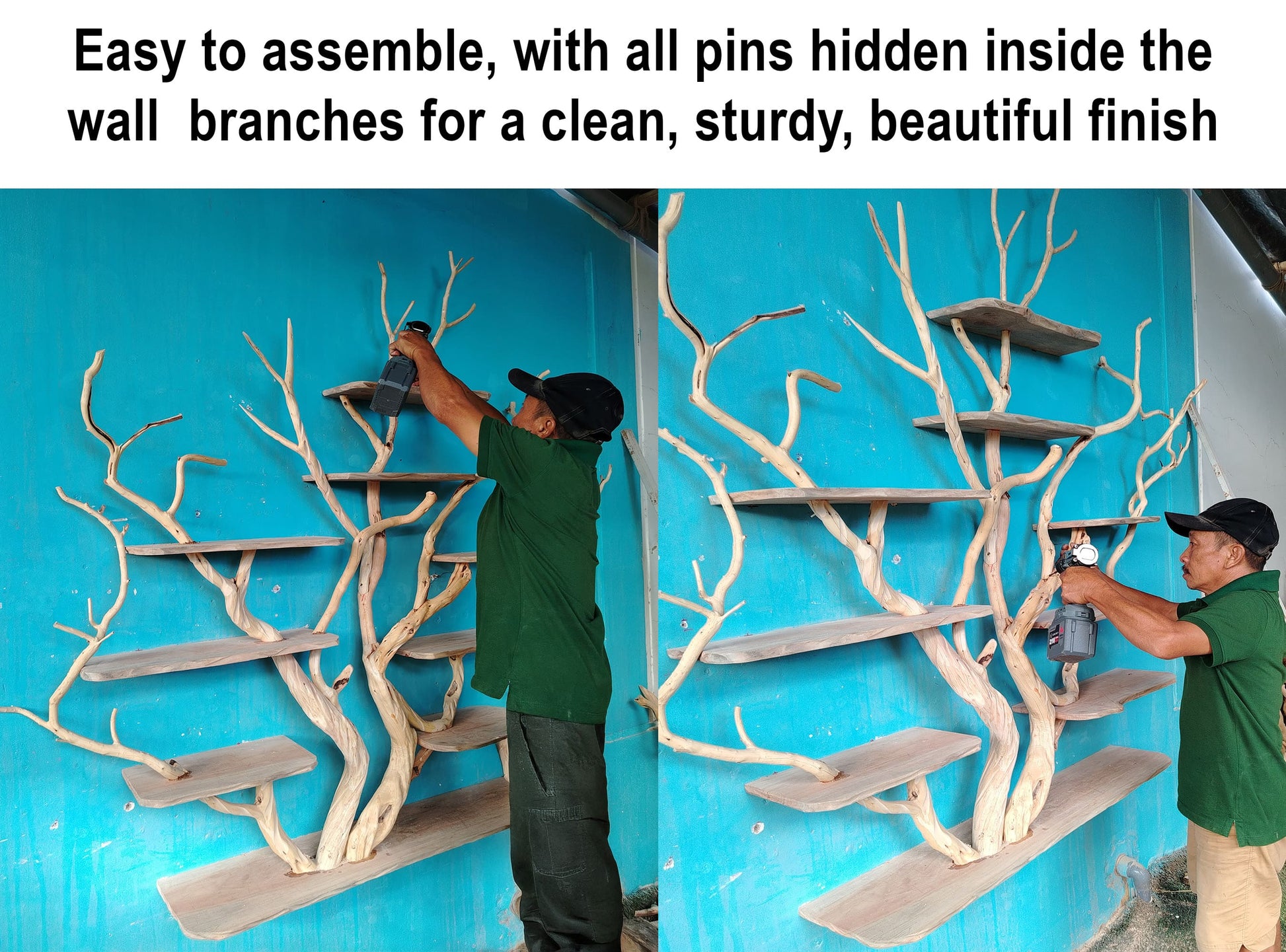Bring a touch of nature into your home with this handmade tree branch floating wood shelf made from solid wood. Each piece is carefully handcrafted from real branches, chosen for their natural curves, organic lines, and strong structure. After being cleaned and dried, the branches are matched with solid wooden planks to create a unique rustic bookshelf for wall decor that feels like a true work of art while still offering excellent strength and durability.