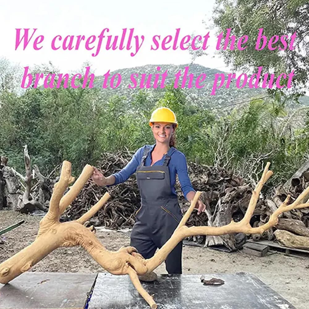 The process begins with the careful selection of natural driftwood branches, chosen for their unique shapes and textures. Our craftsmen then skillfully shape and polish each branch, ensuring that the natural beauty of the wood shines through while maintaining its rustic charm. This attention to detail not only highlights the organic patterns but also guarantees that no two pieces are exactly alike, making your shelf truly one-of-a-kind.
