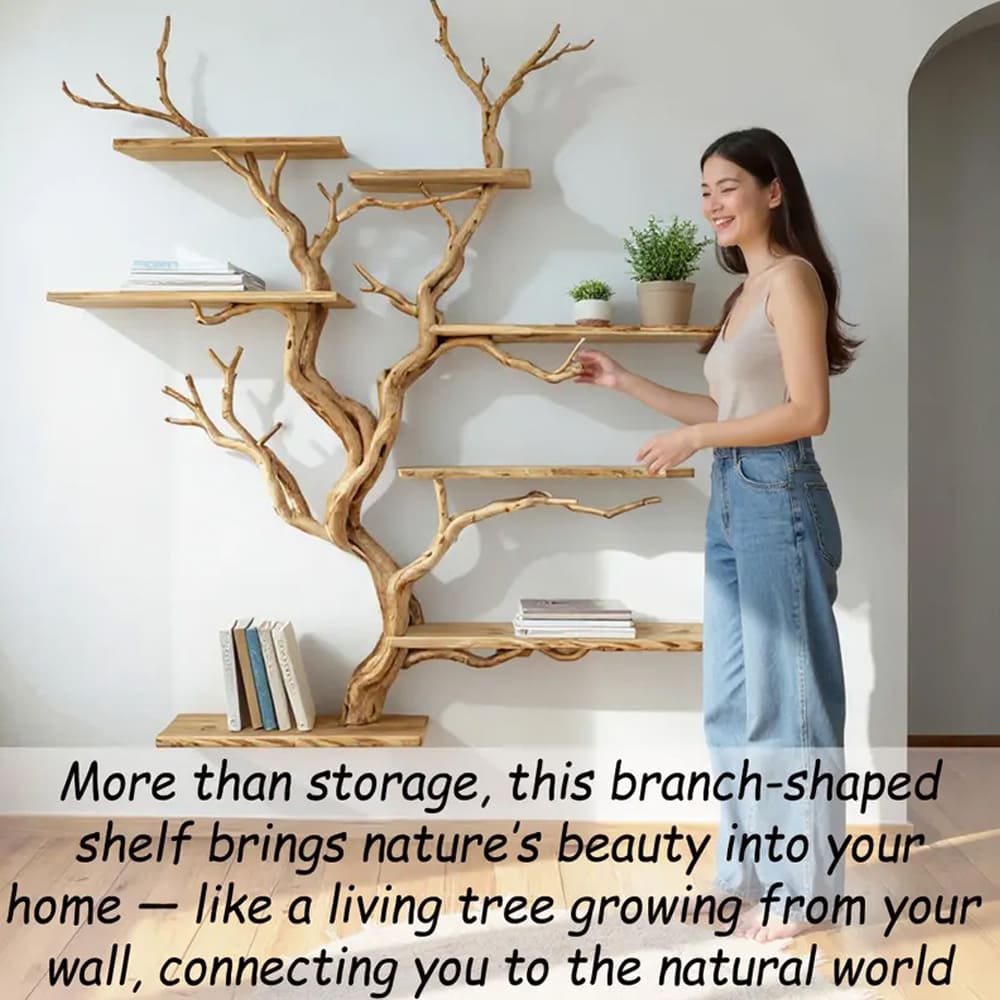 ✨ Bring the tree book shelves - raw beauty of nature into your home with this handcrafted branch-shaped wall shelf — where storage meets art, and sustainability meets timeless design.