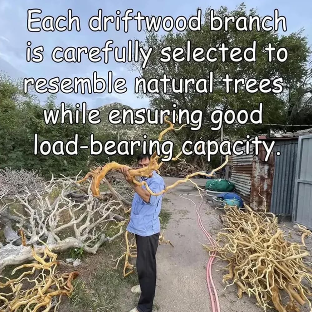Each branch-shaped or tell is reclaimed wood bookcase wall shelf is individually handcrafted from sustainably sourced driftwood and reclaimed storm-fallen trees. We never cut down healthy trees — instead, we collect wood that nature has already set free. Every branch is carefully cleaned, dried, and preserved before being paired with smooth solid wood planks to create a durable, functional, and timeless shelving unit.