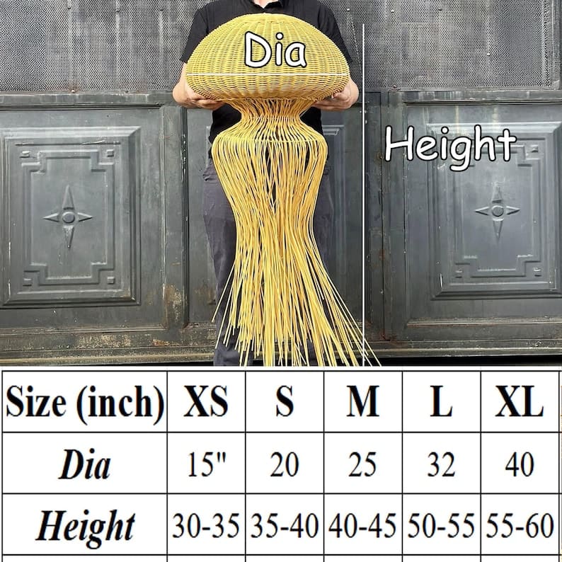 This rattan jelly fish pendant light is entirely handmade, starting with carefully selected natural rattan. The fibers are soaked to soften, then hand-woven by skilled artisans using traditional techniques—no molds, no machines, each hand-woven detail not only shows the skillful weaving skills but also includes the heart and soul of the artisan who loves the traditional weaving craft.