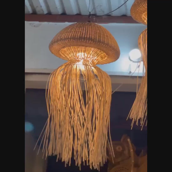 This handcrafted jelly fish light adds a playful, natural touch to any room. Its woven body casts soft, artistic shadows when lit, creating a warm and cozy glow. Lightweight and easy to hang, it's both a beautiful decor piece and a functional source of ambient light — perfect for living rooms, bedrooms, or coastal-style spaces...