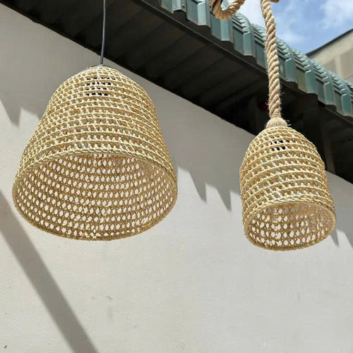 Cone shade lamp rattan pendant light wicker lamp shade vintage woven art deco lamp